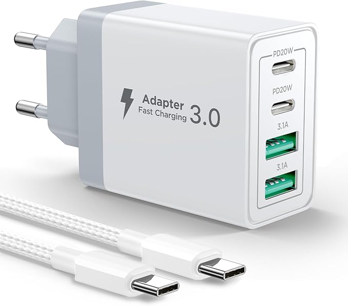 - 【4-Port USB Ladegerät】: Das USB-C-Netzteil ist mit einem 20-W-Dual-Port-USB-C-Anschluss und einem Dual-Port-USB ausgestattet, mit dem bis zu 4 Geräte gleichzeitig aufgeladen werden…
